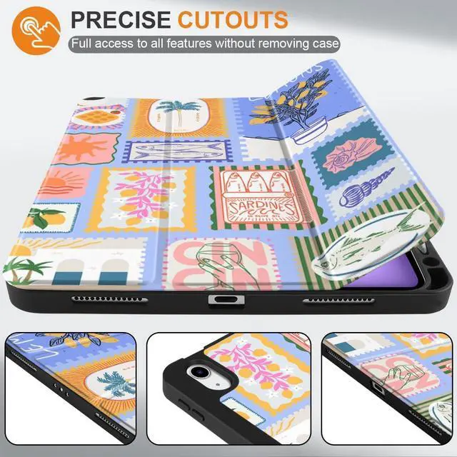 MEEgoodo for M4/M3/M2 iPad Air 11 inch Case 2026 2025 2024,Case for iPad Air 5th Generation/iPad Air 4th Gen 10.9 inch 2022 2020, Tablet Cover with Soft TPU Back Shell, Summer Stamps