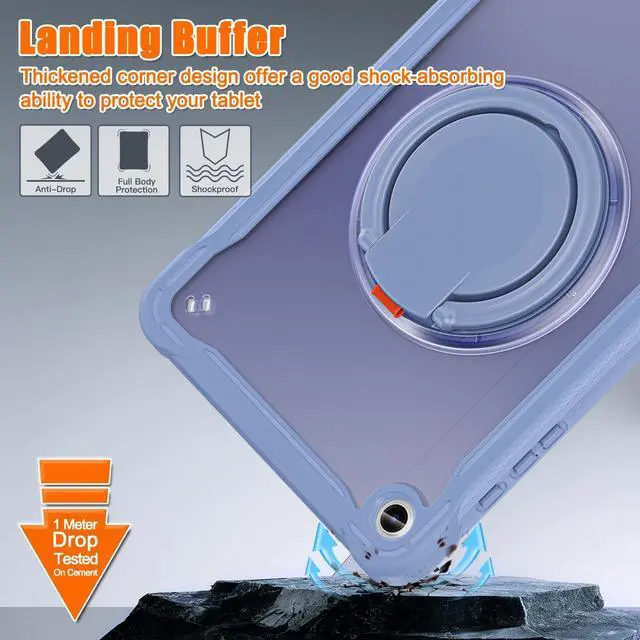 Folding Multifunction Kickstand: The rotatable kickstand can adjust to multiple angles, offering a perfectly smooth and convenient experience for film watching, working and typing. The stand provides stable support on various surfaces. A small elastic ring on the kickstand securely holds your pencil in place for easy access. Importantly, the upgraded ring surface design makes operation effortlesseven for kids. ^^ Portable &