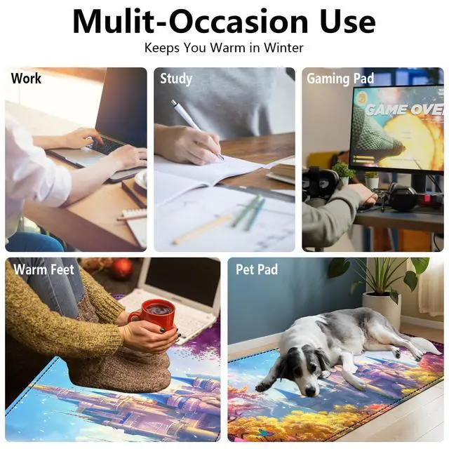 No need to worry if you forget to turn it off ^^ Versatile UseIdeal for office work, gaming, studying, or even as a foot warmer or pet mat. Perfect for keeping hands and feet warm during cold days