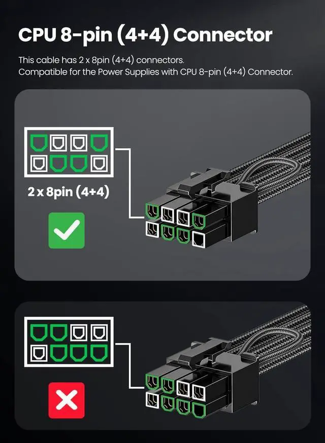 It is 2x8pin(4+4) to 12VHPWR power cable. The PCI-E 5.0 graphics cards will be powered from modular power supply through only two 8pin(4+4) to 16pin cable adapters simply. NoteThis cable is not is not compatible with the GPU with 12pin or 8pin power connector, such as GeForce RTX 3090 Series and 8pin RTX 4070 GPU. Only support 12+4pin female GPU ^^ Only Compatible with Corsair/Great Wall/Thermal-take/NZXT PSUFasgear PCIE 5.0 power cable is ONLY compatible with the Corsair/Great Wall/Thermal-take/NZXT PSU that with 8pin(4+4) ports. One 16pin to 2x8pin(4+4) GPU power cable transfers power from PSU to GPU conveniently.