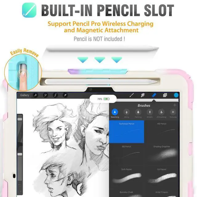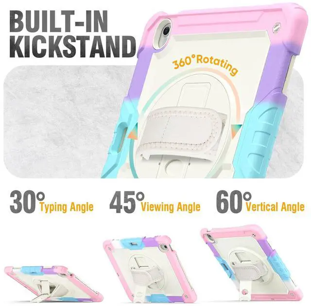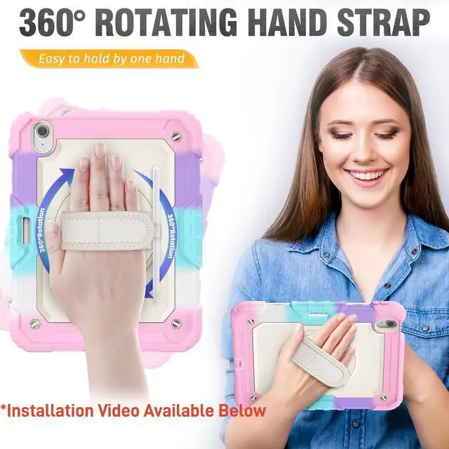 ^^ 360 Rotating Stand & Hand Strap The adjustable stand provides a stable support on viewing/drawing/typing angles. The Hand Strap allows you hold it safely by one hand, Perfect for use your ipad while lying down or sitting. ^^ Shoulder Strap & Pencil Holder Detachable and adjustable shoulder strap, easy to carry the ipad around. Especially ideal for traveling! You can hanging it on the back of the seat use as a TV. The Magnetic Pencil holder can always keep the pen secure in place. ^^ Excellent tablet protection in any setting: daily use, work, travel, tablet ordering in restaurants, tablet-guided bookings in hotels, hospital applications, building and construction businesses work, it's the practical and protective choice for any other scenario where you use your iPad.