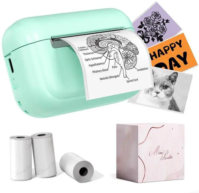 Memoking Portable Mini Printer Q02E Sticker Printer for Photo, Scrapbook, Gift, DIY, Student, Green