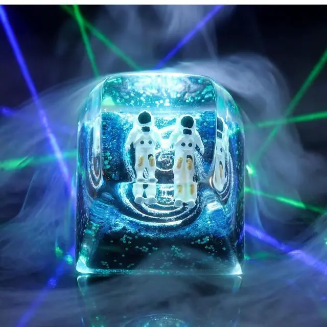HANDCRAFTED DEEP-SPACE GALAXY DESIGN Each keycap is carefully handcrafted using layered resin techniques to create a true deep-space effect with swirling nebula colors, shimmering purple and blue gradients, and fine cosmic glitter. The multidimensional shine changes beautifully under different angles of light, making your keyboard instantly stand out in any setupgaming, office, or creative workspace. ^^ 3D MINI ASTRONAUT FLOATING INSIDE A tiny astronaut figure is individually hand-placed inside each keycap, creating the illusion of a weightless space explorer drifting through the galaxy. This playful 3D detail adds personality, charm, and a unique artisan touch that mechanical keyboard collectors absolutely love.