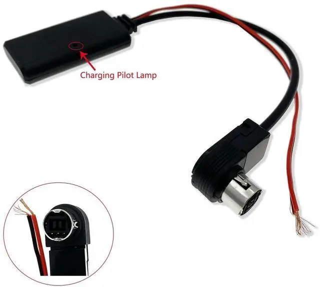 Description: 1, This cable is with Bluetooth module. 2, This product is specially made for car audio/stereo. 3, Can be used with Alpine radios if only there is socket for our connector and it has AUX function. 4, Just plug the connector into the back of the radio, connect the two wires with 12V+ (red), 12V- (black). 5, Choose Aux from the panel and connect your phone or mp3 with bluetooth. 6, You can enjoy the music from the phone or mp3 pad and more. (They phone should have Bluetooth function. )7, Bluetooth 4.0 version, and compatible with 2.0 3.0 4.0 other versions of Bluetooth, can support the commonly used MP3 format audio, but also support the WMA WAV FLAC, and other high-quality audio format decoding, non-ordinary Bluetooth functions, can support DSD large capacity transmission. 8, In addition, the voice of QQ music, KuGou music, film, map navigation can be transmitted to the car, which can only transmit the sound, not play the image on the car.