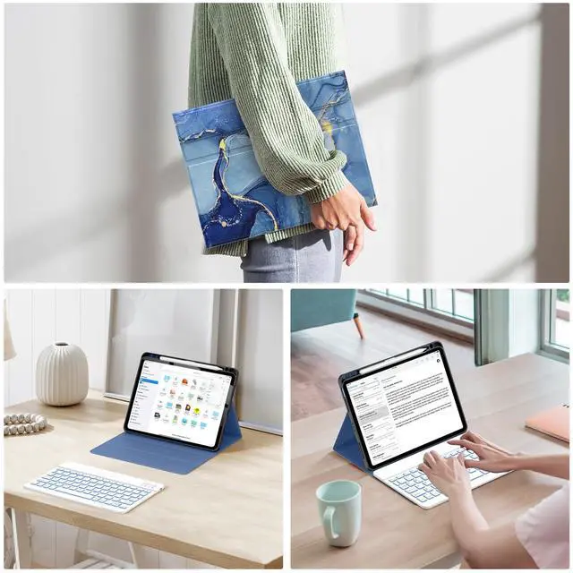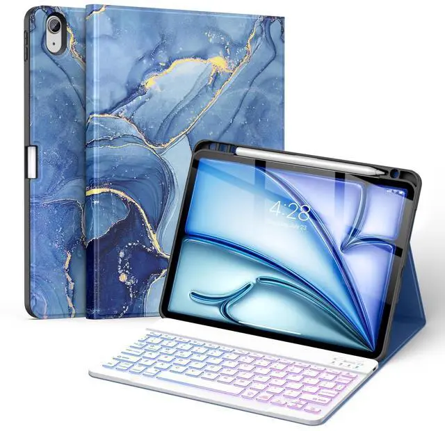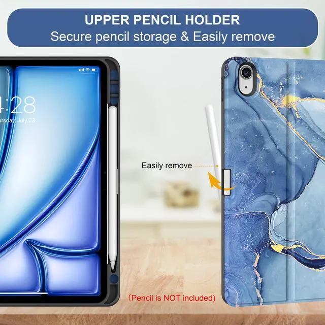 (Tips: Pencil is NOT included) ^^ Anti-Slip Groove The keyboard case compatible with Air 11 & iPad Air 5th/4th is lined with 2 non-slip grooves that support the iPad to stand at two different viewing angles: 120 and 130. You can change the angle of the iPad according to your work, movie watching, or typing needs ^^ Auto Sleep/Wake The built-in magnets of keyboard cover for iPad Air support with automatically sleep and wake function to protect and save the battery life, and prolonging the time you use your iPad ^^ You Will Get 1 x Case for iPad Air 11 inch (M3/M2) & Air 5th/4th Generation, 1 x Bluetooth keyboard, 1x Type-C charging cable, 1 x user guide.