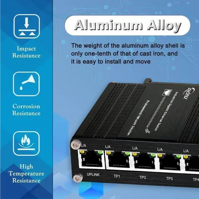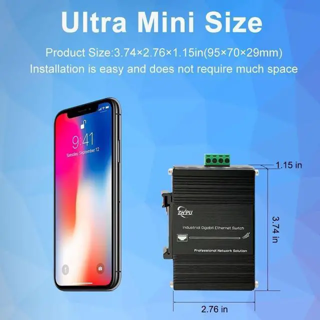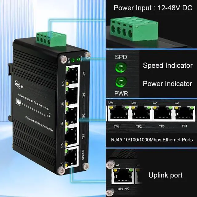 • 5-Port Gigabit Industrial Switch: 10/100/1000Mbps RJ45 ports with auto-MDI/MDI-X for reliable network.