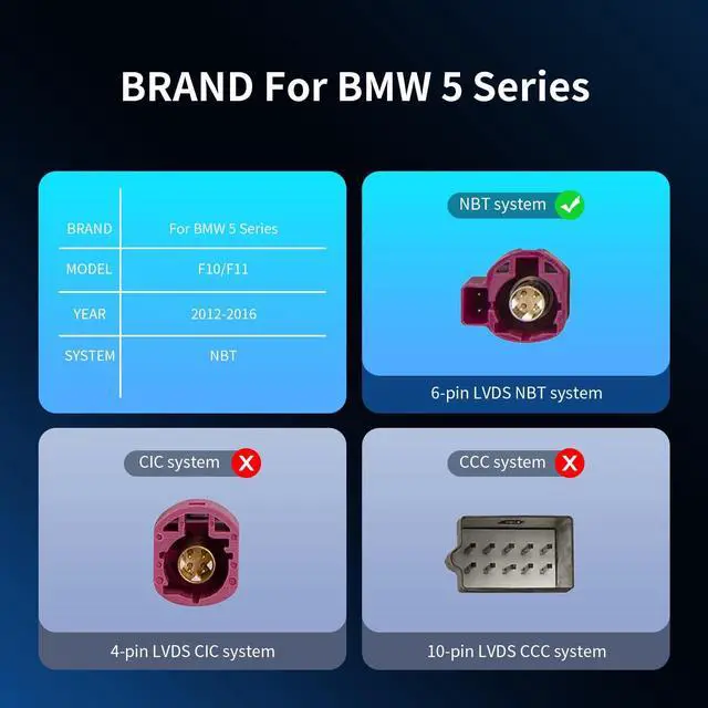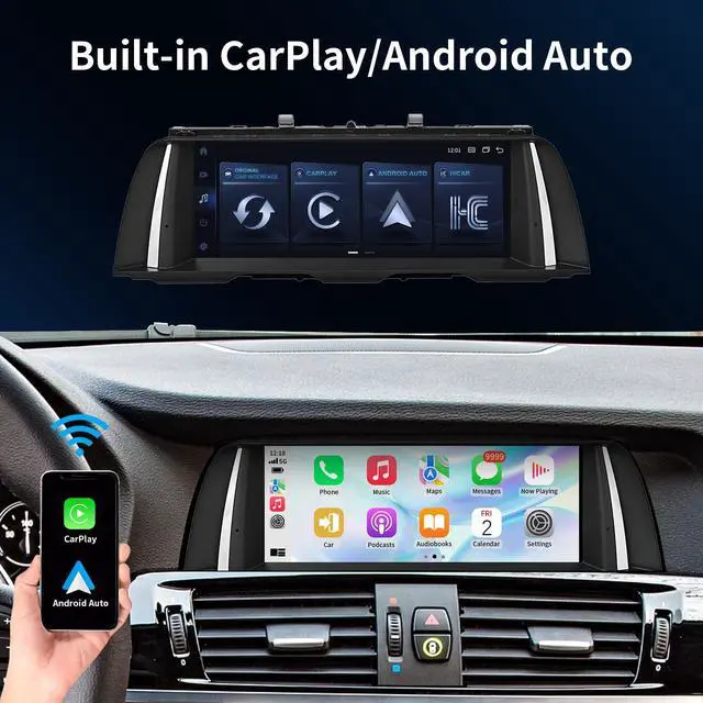 Pre-purchase NoticeThis touch screen is a Linux car display upgrade accessory for BMW models. Applicable to BMW 5 Series (2012-2016), chassis code F10/F11, models equipped with NBT system with 6-pin LVDS cable (not compatible with NBT evo). If you are not sure about your vehicle system, please consult us. If you are not sure how to install it, you can watch the instructions and installation video we provide. ^^ Built-in CarPlay and Android AutoThis product supports wireless and wired CarPlay and Android Auto, allowing you to seamlessly connect your smartphone to the car system, whether it is iOS or Android system.