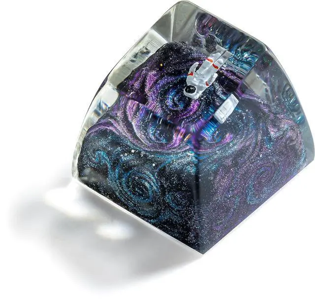 HANDCRAFTED DEEP-SPACE GALAXY DESIGN Each keycap is carefully handcrafted using layered resin techniques to create a true deep-space effect with swirling nebula colors, shimmering purple and blue gradients, and fine cosmic glitter. The multidimensional shine changes beautifully under different angles of light, making your keyboard instantly stand out in any setupgaming, office, or creative workspace. ^^ 3D MINI ASTRONAUT FLOATING INSIDE A tiny astronaut figure is individually hand-placed inside each keycap, creating the illusion of a weightless space explorer drifting through the galaxy. This playful 3D detail adds personality, charm, and a unique artisan touch that mechanical keyboard collectors absolutely love.