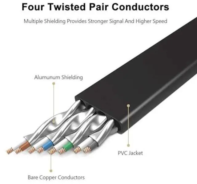 It is perfect for networking switches, routers, ADSL, adapters, modems, PS3/PS4/PS5, Xbox, patch panels, servers, networking printers, NETGEAR, TP-Link, NAS, VoIP phones, laptops, couplers, hubs, keystone jacks, smart TVs, iMacs, and any other devices with RJ45 connectors. ^^ Weatherproof & UV Resistant Jadaol in-wall network cables are made of 4 shielded foiled twisted pairs of copper wires and a UV-resistant PVC jacket, with a 50-micron gold-plated RJ45 connector on each end. This makes it more durable, flexible, waterproof, anti-corrosion, anti-aging, anti-UV, and tough for both outdoor and indoor use.