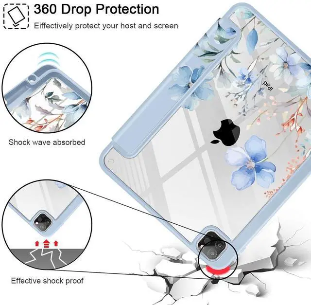 Generation 2018 (Model: A1876 / A2014 / A1895 / A1983). Please check back bottom of your iPad to find the model number ^^ Full ProtectionMade of durable PU leather and TPU, front and back covered by soft PU, the inside durable TPU can fix your Tablet and protect its back cover and four corners, maximum protect your tablet from drop and scratch, the surface is soft and silky to provide a comfortable touch to the skin. ^^ Clear Black CoverHardshell back cover with flexible TPU bumper protects your iPad from shocks, drops and impacts. Soft microfiber interior front prevents your tablet from scratched. And the crystal clear back cover will proudly show off the Apple icon. ^^ Built-in Pencil holder & adapter slot, designed for charge/pair with the 2nd Gen Pencil. Grab your Pencil & adapter effortlessly whenever you want, easily to carry your pencil with your device. (Case only, other accessories not included! ) ^^ Comfortable Use Featuring a trifold design that allows for two positions. In its 30 angle mode, the case can be used daily for both computer use and typing.