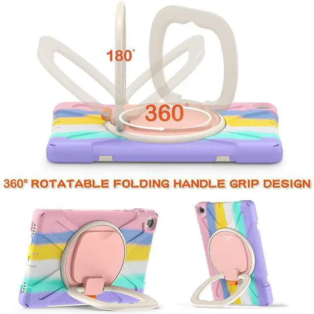 Adjustable Hand Handle: Whether it is a child or an adult, you can adjust the tightness of the strap so that users comFortable to master their own tablet180Handle Grip & 360rotating Kickstandwith Kickstand. The adjustable/rotatable handle Grip is made from PC, fit for kids/adults, comfortable to hold the center gravity of tablet. Advanced 3 in 1 construction with premium PC and shock-absorbing TPU material offers comprehensive protection for your tablet. Shockproof and drop-proofHeavy Duty Full Body Tablet Case design for maximize protect your tablet, against accidental drops, shocks, scratches, dirt and daily wear and tear. With the case on, no need to worry about your tablet get broken. Precise cutouts. Easy to install and take off the case.