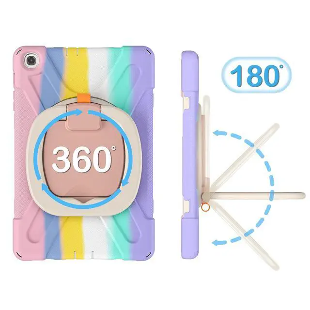 Rainbow Color Heavy Duty Drop Protection Tablet Case with 360 Degree Stand & Handle & Shoulder Strap for KidsDesigned for Samsung Galaxy Tab A 10.1 Case 2019