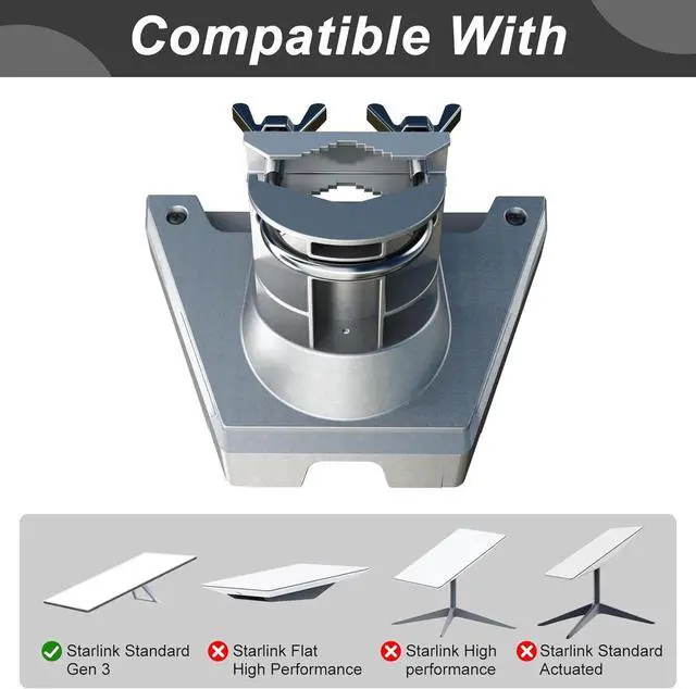 Standard Dish: Specifically designed for Starlink Gen 3 (V3) Standard Dish, this mounting kit ensures proper fit and secure attachment. The included pipe adapter supports 360 rotation and up to 20 tilt, allowing precise alignment for optimal signal reception. ^^ Heavy-Duty Construction for Long-Term