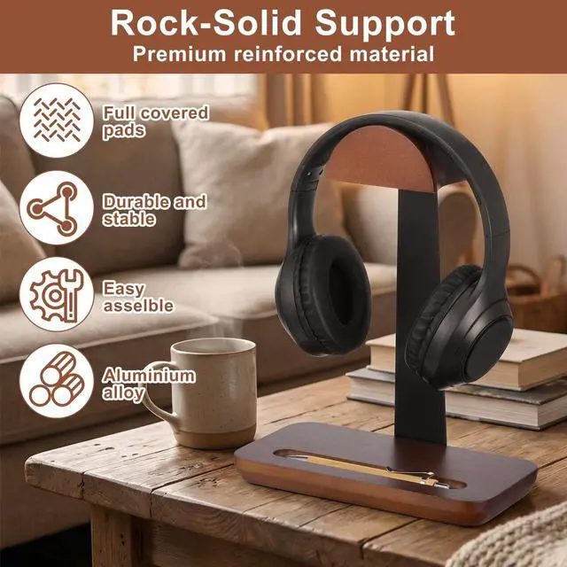 Simple DesignOur walnut headphone stand emphasizes the beauty of its material and smooth lines. Its warm wood color harmonizes with various desktop styles. More than just a functional accessory, it's an elegant decorative piece that quietly enhances th