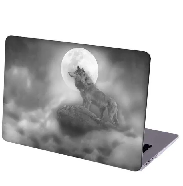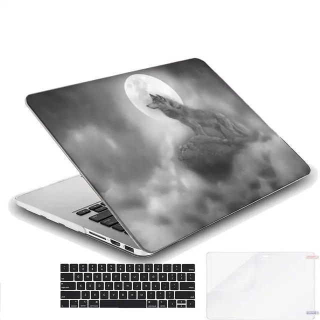 MINGDAO Compatible with MacBook Pro 13 inch, Hard Protective Shell with Keyboard Cover ( M1 A2338 A2289 A2251 A2159 A1989 A1706 A1708, 2016-2020 Release) - Monochrome Night Wolf and Full Moon