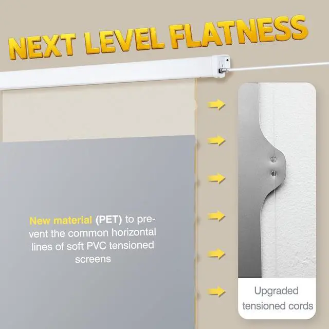 A perfectly flat screen Thanks to the upgraded tab-tensioned system, this screen works well with all projectors, including the most demanding UST projectors.