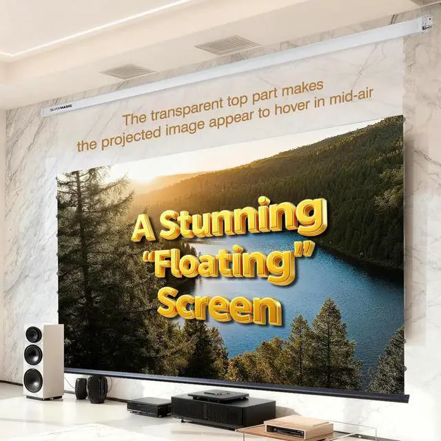 ALR Tensioned Motorized Projector Screen by SilverMagic - Tab Tensioned and Modern Design Gray Screen with White Aluminum case for Home Theater/Living Room/Patio/Office/Classroom - 150 inch 16:9
