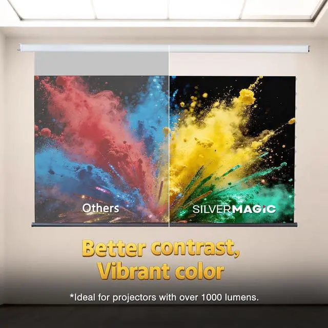 Better contrast, Vibrant colorThe gray screen material enhances image quality, offering improved contrast, deeper black levels, and more vibrant colors, especially under ambient light. Ideal for projectors with over 1000 lumens.