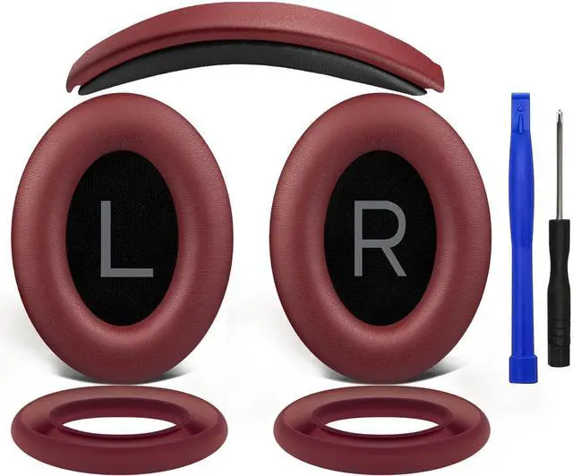 SOULWIT Replacement Kit for Bose QuietComfort 45 (QC45)/Quiet Comfort 35 (QC35, QC35II)/QC SE/QC Wireless Headphones, Ear Pads Cushions + Headband + Silicone Earpads Cover Protector - Burgundy