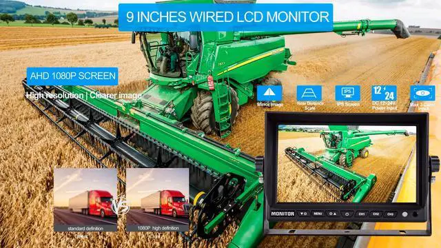 Application: A performance enhanced ahd 1080P wired one camera kit with automotive grade chipset. For its high vibration-proof rating of 10G and wide power input range DC12-24V, it is suitable for large vehicles, such as buses, box trucks, pickup trucks, garbage trucks, flatbed trucks, dump trucks, street sweeper trucks, refrigerator trucks, motor homes, vans, skid steers, farm tractors, combines, cotton pickers, crop sprayers, snow plows, forklifts, excavators, heavy equipments, etc. ^^ 9" Monitor with
