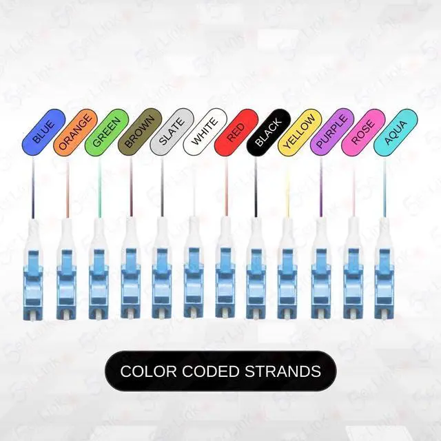 Low Insertion and Back Reflection Loss ^^ Ideal for use in Telecommunication Networks, LAN, WAN and Data Processing Networks ^^ Includes 12 Fusion Splice Protective Shrink Sleeves 2.5 - 60mm long ^^ Fiber optic strands are Individually color coded ^^ Available in Single-mode and Multi-mode (LC, SC, ST and FC Connectors)