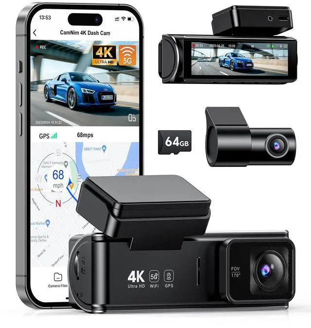 • 4K Front+1080P Rear Recording: CamNim dash camera for cars captures every detail on the road with a 4K Ultra HD front camera and 1080P Full HD rear camera(170 front, 150 rear). Perfectly reads road signs, license plates, and critical incident details