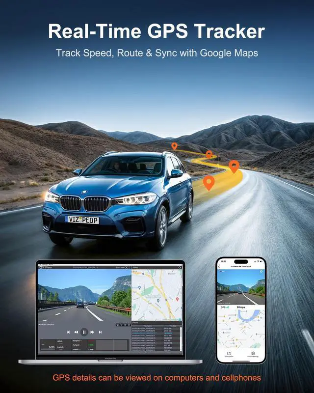 GPS Tracking: Sync with Google Maps to track speed, routes, and coordinates in real time. The 3.59" display shows live speed, while the Viidure app/HIT GPS player on desktop lets you review journeys anytimeideal for commuters, fleets, and road trip lovers ^^ 24/7