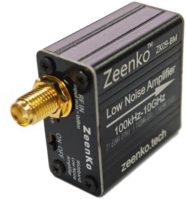 Gain: 21dB@10MHz / 17db@6GHz / 13db@10GHz, OP1dB: 13dBm Typ. Can be used to replace ADM-8095, ADM-8625 modules ^^ [USB Interface Powered] The ZK09-BM is a USB-powered RF low noise amplifier, adds a battery and reduces power consumption, making it suitable for portable use ^^ [Built-in Battery] Built-in 300mAh battery, it has a flatter and more consistent gain, lower noise figure, smaller size, and longer battery life (Charging 210mA, Total 260mA, Battery life 5 hours) ^^ [Application] Recommended for use as tinySA ULTRA 5.8GH z preamplifier(Unless specifically requested, please avoid using both the built-in LNA and external LNA of tinySA ULTRA at the same time). For RF & Software Defined Radio (SDR) ^^ [Note] It is not recommended to employ a preamplifier in an environment with intense background noise. This might clog the receiver or cause the AGC circuit of the receiver to lower the reception gain, particularly in residential districts where medium and short waves are more prone to interference ^^ [Package List] 1x ZK09-BM LNA Modules; 1x USB Cable