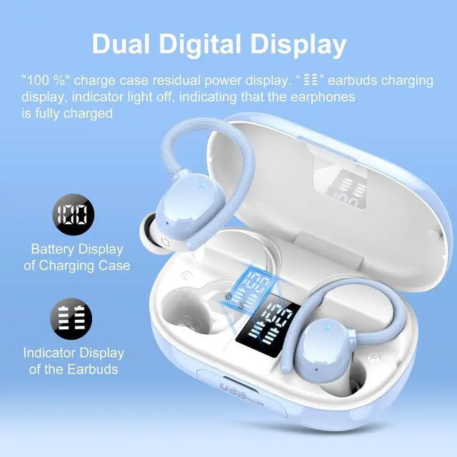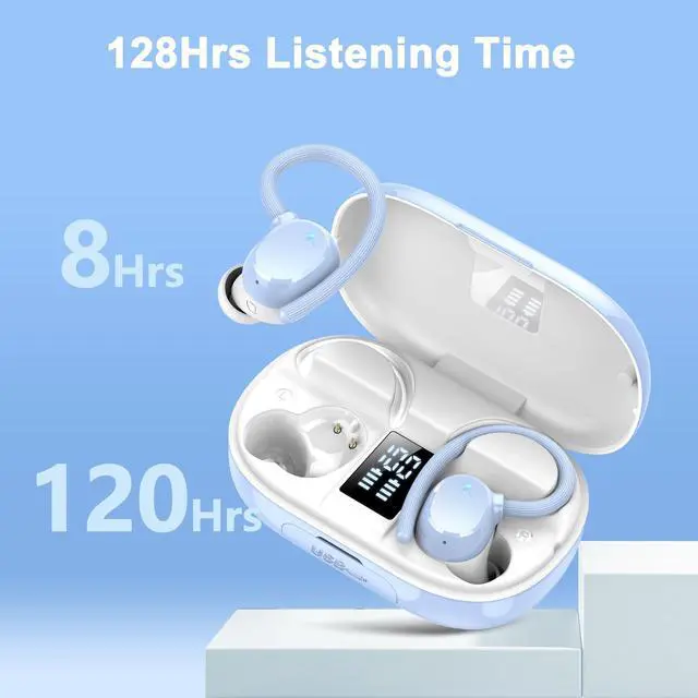 128 HOURS PLAYTIME AND LED DIGITAL DISPLAY: Q22 ear buds have an extra-long battery life of 8 hours of playtime and a 2600 mAh charging case for 120 hours of music playback; Wireless earbuds are equipped with a dual LED digital display that highlights the remaining power in the charging case and the charging status of the earbuds, allowing for efficient use of the ear buds and timely charging of the earphones; Bluetooth headphones over the ear utilize tycp-C fast charging technology, which provides 2 hours of music listening time in 10 mins of charging ^^ HIGH FIDUCIENT SOUND QUALITY AND ENC CLEAR CALLS: With 13 mm dual-layer graphene diaphragm drivers and equipped with hybrid ENC noise cancellation and Hi-Fi technology, Q22 bluetooth earbuds unique bass enhancement algorithms feature powerful bass and pristine sound, for a breathtaking sound experience that is as immersive as it is acoustic; Equipped with a high-quality ENC noise-cancelling microphone that passively eliminates 90% of background noise, you can enjoy a first-class call experience wherever you are ^^ UPGRADED BLUETOOTH 5.3
