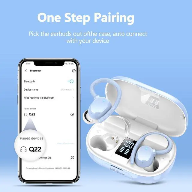 COMPATIBILITY AND SMART TOUCH CONTROL: Q22 earbuds wireless bluetooth are compatible with a range of bluetooth devices, including smartphones, TVs and laptops, so you don't need to worry about compatibility issues; wireless ear buds are equipped with smart touch technology, which makes it easy to control without the need to operate your cell phone, such as switching tracks, adjusting the volume, answering/hanging up phone calls, voice assistant and other functions, so that you can listen to your music while you are running, reading, or working ^^