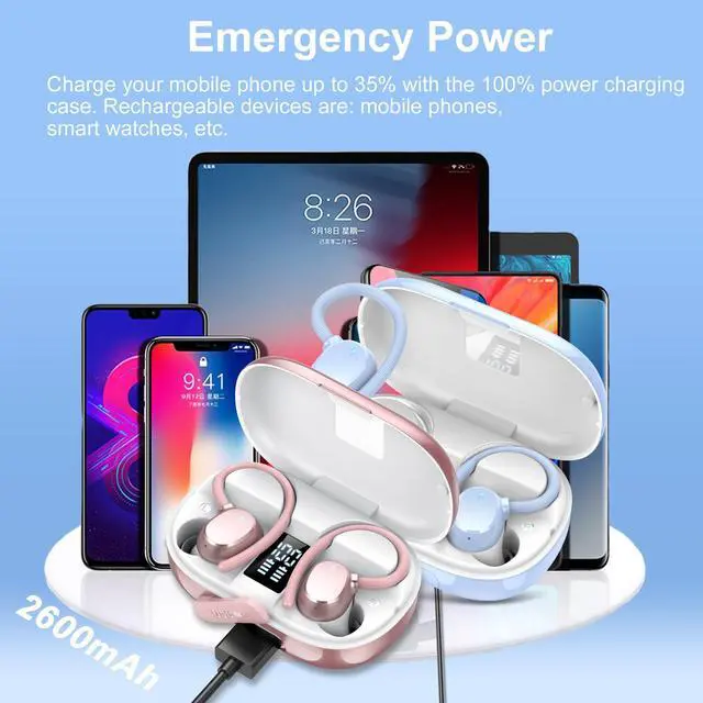 EMERGENCY POWER: 2600 mAh charging case not only provides sufficient power for your ear buds, but also provides charging support for your cell phone, tablet or other devices in case of emergency; When the charging case is fully charged, it can charge your cell phone by more than 30%, allowing you to solve the problem of charging on the go; whether you are on the go, at work, or in your daily life, Q22 headphones are a companion for your music listening and mobile power ^^