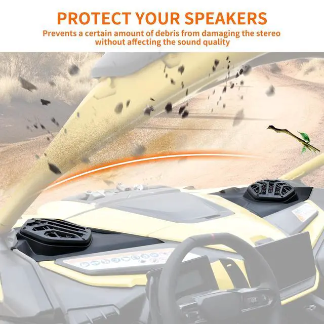 Features: Our front dashboard speaker pods provide reliable protection without compromising sound quality, it will prevent your speakers from falling over when you are travelling on rough roads and prevent dirt, mud and sand from entering the speakers ^^