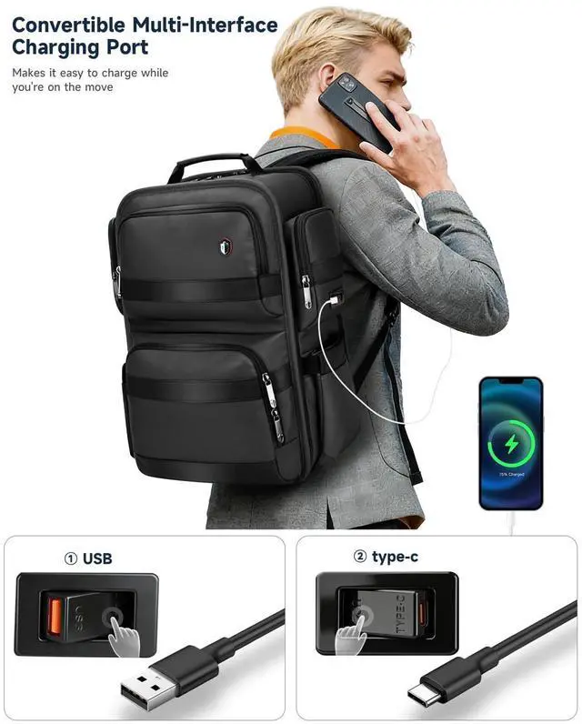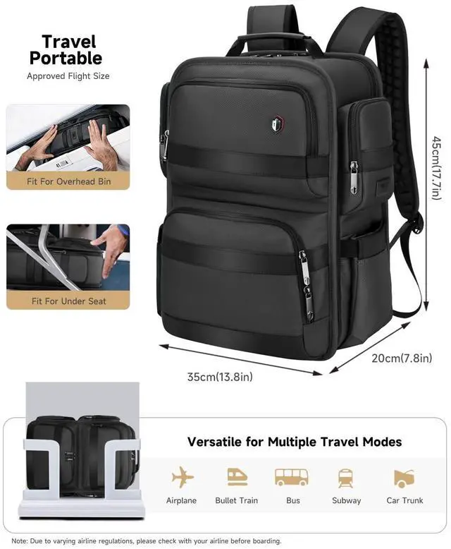 TSA Friendly Design: This travel carry on backpack is meticulously designed to meet airline size requirements, fitting perfectly under the seat or in the overhead bin. The specialized 180-degree lay-flat opening allows you to pass through airport security quickly without removing your laptop, TSA friendly, ideal for a quick business trip or daily commute. ^^ Dual USB-C Charging Ports & Anti-Theft Protection: Stay powered up on the go with our advanced integrated USB and Type-C dual charging ports. This backpack features 4 side pockets and a hidden anti-theft pocket on the back to protect your valuables like passports and wallets. Whether you are commuting or traveling, this high-tech laptop backpack ensures your devices stay charged and your belongings stay secure. ^^ Durable Waterproof Fabric & Maximum Protection: Crafted from high-quality, tear-resistant materials, this waterproof laptop backpack is built to withstand the rigors of daily use. The premium water-resistant fabric provides an extra layer of protection for your expensive electronic devices against unexpected rain or spills. Durable and practical, it offers total peace of mind for any professional or traveler looking for long-lasting performance.