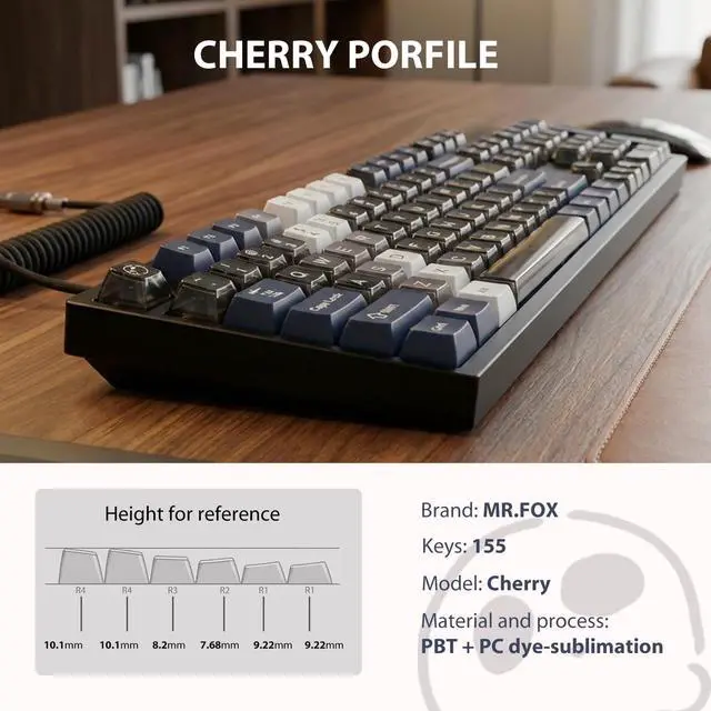 Maximum Flexibility: This comprehensive set includes 155 keys, offering extensive support for a wide variety of layouts including 60%, 65%, 75%, TKL, 100%, and more. It provides all the essential keys, modifiers, and novelty accents for fully customized builds. ^^ Cherry Profile for