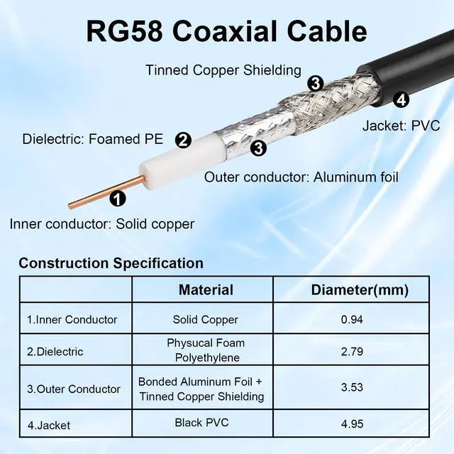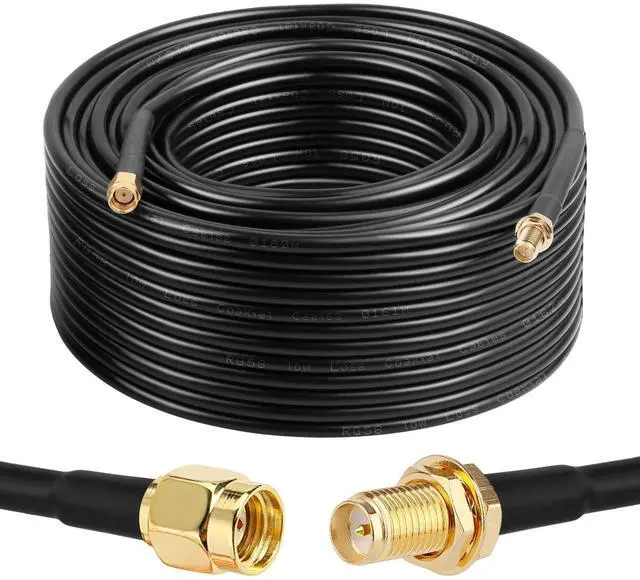 Length: 50 Feet. ^^ [Ultra Low-Loss] - This Low Loss wifi antenna extension cable allows transfer of signals over large distances, supports higher frequency use and minimum signal loss. ^^ [Premium Material] - The inner conductor of this rg58 rp-sma male to rp-sma female coax cable is made of solid copper, so it is efficient and causes low signal loss. The Jacket is made of the flexible and proof-water pvc that could be used so long in the harsh environments in the outdoor. ^^ [Widely Application] - This 50 ohm rp-sma coax cable could be used for Wireless LAN, Wireless Router, Wireless Network Card Adapter, WiFi IP Security Camera, WiFi Antennas, Wireless Video Surveillance Equipment, Wireless Video and so on. ^^ [Package Include] - 1x 100ft RP-SMA Male to RP-SMA Female Cable.