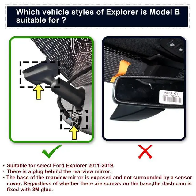 Custom fit for Ford ExplorerMangoal 4k dash cam can fit perfectly behind the rear view mirror like original. No messy wiring exposed, no complicated rewire at all. Perfectly intergrated with Ford Explorer U502 2011-2019 vehicle styles. Such as Base, XLT, ST_Line, ST, limited, Timberline, Platinum and King Ranch. Suitable for vehicles with A PLUG on the interior rearview mirror ^^ 4K Image and Ultra HD 2160P VideoUpgraded with f/ 1.8 big aperture lens and CMOS IMX335 chip to enable high-definition video at 2160P/30fps, Mangoal OEM style dash cam for can provide 4K image performance in all aspects.