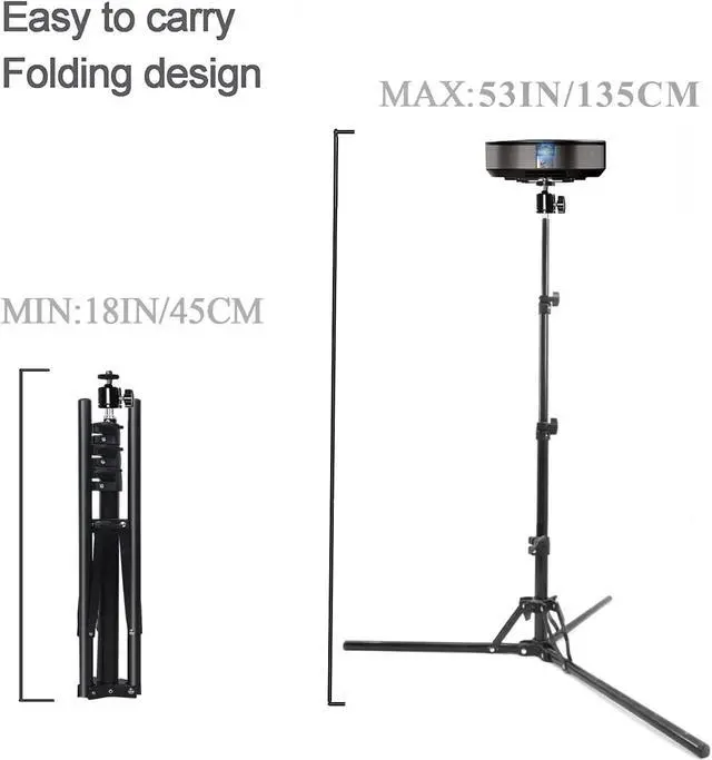 tripod projector stand: It can be folded into a portable size and weighs only 1.5 lbs. It is very suitable for offices, classrooms, presentations, travel, live broadcasts, commercial exhibitions. Easy to assemble and set up!