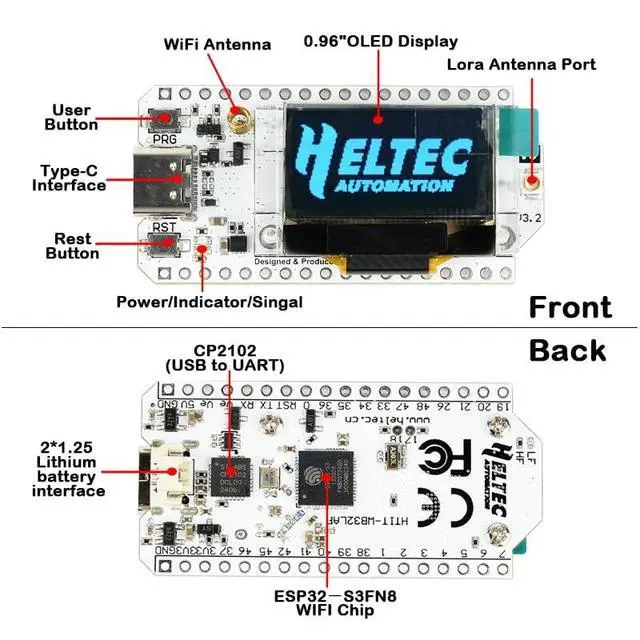 Highly Integrated: Combines a dual-core ESP32-S3, LoRa (SX1262), Wi-Fi, Bluetooth, and a CP2102 USB chip into a single compact board, 8MB flash, Lora antenna port, simplifying your hardware design ^^ Flexible