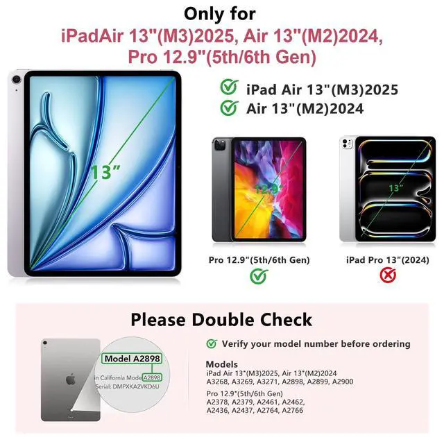 Air 13-inch (M3/M2 2025/2024) (Model: A3269/A3271/A2900/A2899/A2898), For iPad Pro 12.9 inch 6th