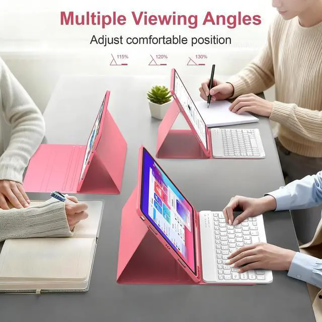 Charging time: 2-3 hours, work for more than 80 hours. Specific pencil slot to place the pen when fully charged, avoids damage to the Pens battery with multiple charges, comes with a special pencil holder compatible with Apple tablet stylus for a more compact design ^^ MULTIPLE STAND ANGLES FOR COMFORTABLE USE: Our keyboard case is compatible with the iPad Pro 12.9 -inch, using a flip magnet separate design with built-in three different angles of standing on the bottom of the cover to ensure a comfortable viewing angle - Typing, Reading, Gaming - giving you amazing versatility. Easily adjusts to whatever comfortable angle suits you best. Perfect for working, writing, or watching videos at work, school, travel, and home ^^