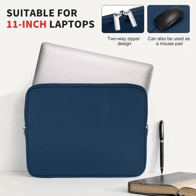 Color: Dark Blue. This 14-inch laptop sleeve has ample space to store your device while maintaining a lightweight design so you never feel heavy.