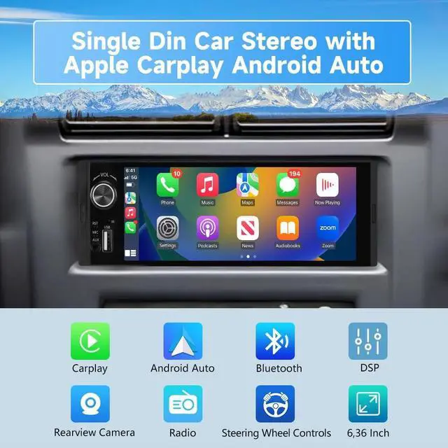 This is common in: Ford, Lincoln, GM (Chevy/GMC/Cadillac), Chrysler, Dodge, Jeep, Ram, European imports (VW, Audi, BMW, Mercedes), and some Subaru and Mazda models. ^^ Bluetooth 5.0 - Stable & Fast Connection with FM Radio This single din CarPlay stereo built with Bluetooth 5.0 provides faster and more stable pairing for hands-free calls and wireless music streaming. Enjoy clear and uninterrupted FM radio reception, giving you access to your favorite stations. ^^ 5-Band EQ Setting for Custom AudioThe single din touchscreen radio integrates a 5-band EQ equalizer that lets you fine-tune bass, treble, midrange, and audio balance. Deliver a custom, immersive sound experience tailored to your music style and driving mood, allowing you to personalize your in-car listening experience. ^^ Waterproof 720P HD Night Vision Rear Camera & RCA Output Enhance parking safety with an ultra-wide-angle, waterproof HD backup camera that delivers clear 720P night vision, even in low-light or rainy conditions. The system automatically switches to the rear view when reversing, making parking easier and safer. Supports RCA output, ensuring seamless integration with your car stereo for clearer visibility and more accurate maneuvering in any driving condition.