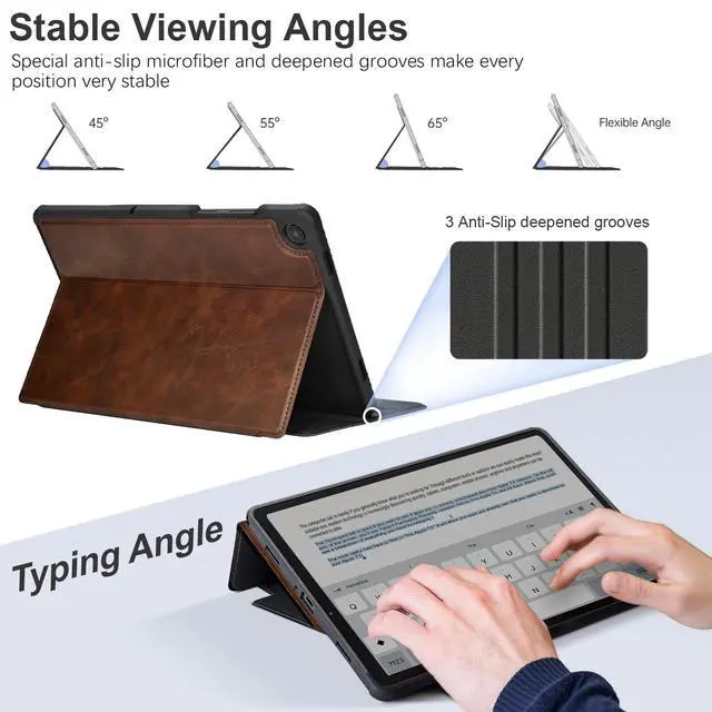 Standing Angles: this case features 3 viewing angles and 1 typing angle, The ability to adjusting the stand to various angles reduces neck strain during prolonged typing, video calls, or web browsing, making it more comfortable for work or leisure. The anti-slip microfiber Lining and deepened grooves make every position very stable and protect tablet screen against scratches ^^