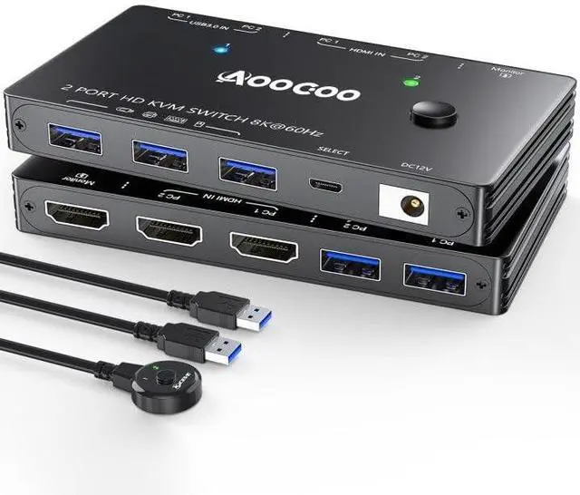 ^^ Support HD 8KThis KVM Switch 1 monitor 2 computer can support the resolution up to 8K@60Hz, and can also be backward compatible with 3840*2160@120Hz, 3840*2160@60Hz etc., which will bring you ultra-high-definition visual senses. Please use HDMI 2.1 cable, and the shorter the cable length, the better. ^^ Two Switching ModesUSB 3.0 KVM Switch 2 Port HDMI by One-botton switch or desktop controller, freely switch between 2 computers, saving space on your desk and sharing your display, keyboard and mouse between both computers, increasing your productivity in the office or at home.