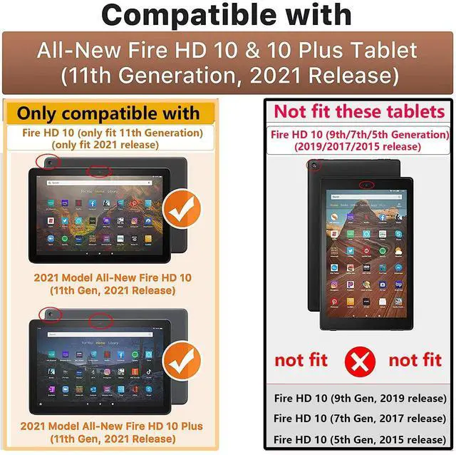 Fits Your Tablet: only fits 10.1 inch All-new kindle Fire HD 10 tablet (11th Generation) - 2021 release, ( 10.1" Display); only fits 10.1 inch All-new kindle Fire HD 10 plus tablet (11th Generation) - 2021 release, ( 10.1" Display); UUcovers