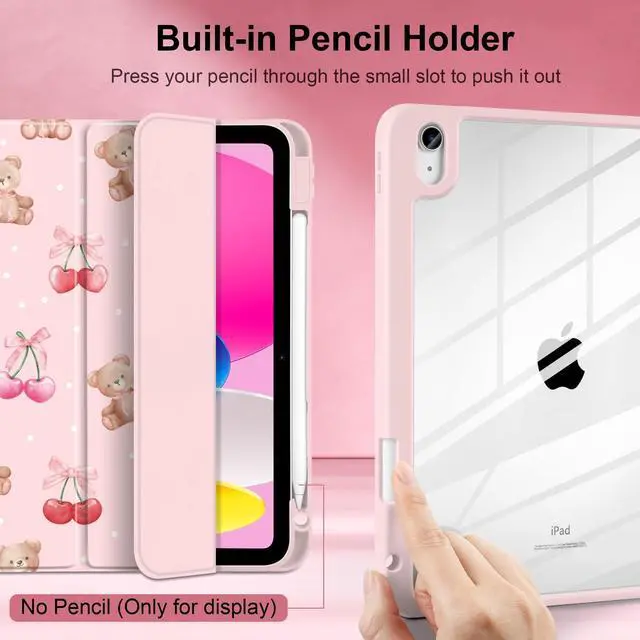 TWOLSKOO for iPad 11th & 10th Gen Case with Pencil Holder, Trifold Stand, Auto Sleep/Wake, Clear Acrylic Back with TPU Bumper, for iPad 11-inch (2025, A16 Chip) & 10.9-inch (2022), Lovely Bear