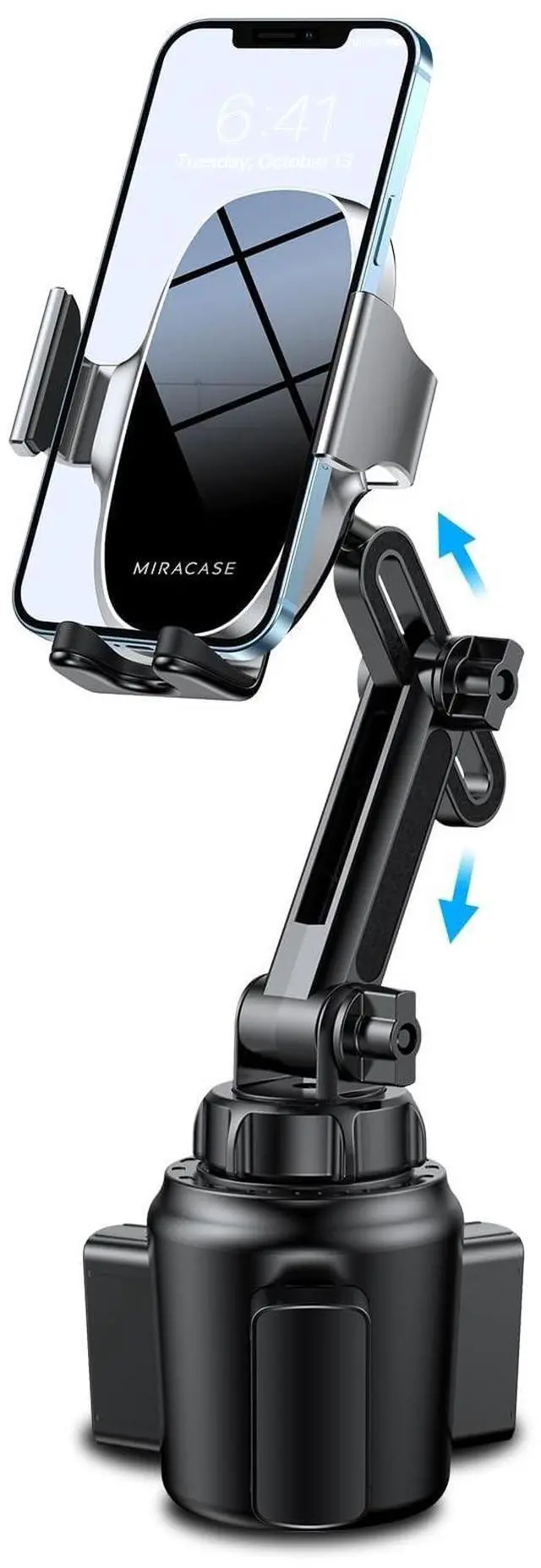 Upgraded-Latest Version: Miracase newest cup phone holder for car upgraded the long neck which makes it much more flexible (with 2 adjustable knobs) and longer (Up to 11"), allows you to adjust a perfect view angle and height, ensure your safe driving. ^^