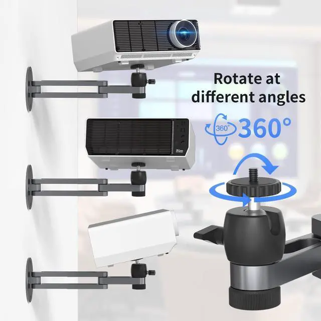 Foldable Projector Wall Mount Universal Adjustable Ceiling Wall Projector Mount Aluminum Alloy Projectors Stand,1/4" and M6 Screw Size (foldable wall mount)