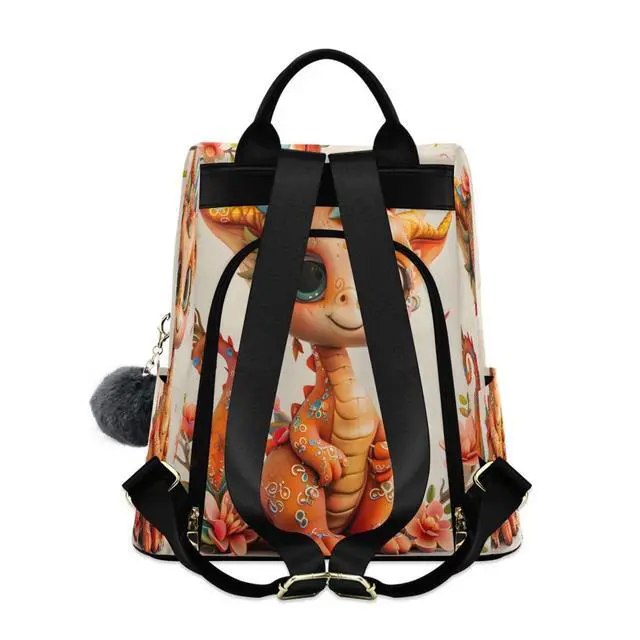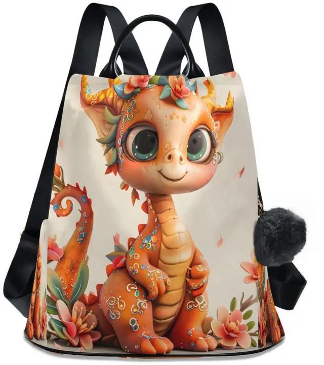 ALAZA Cute Dragon Cherry Blossom Backpack Purse for Women Anti Theft Fashion Back Pack Shoulder Bag