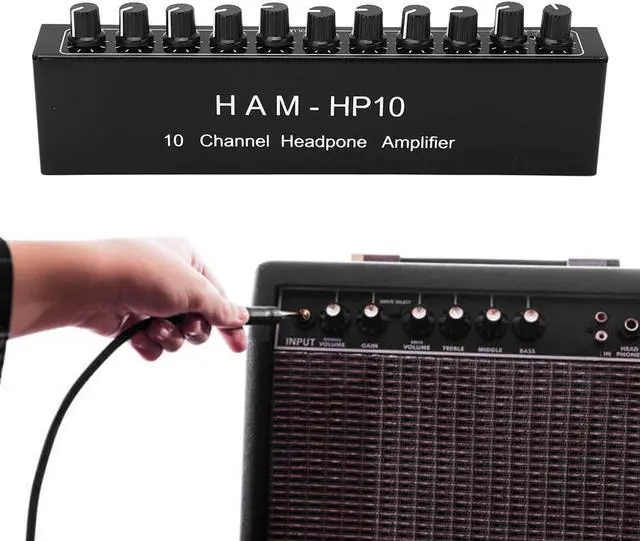 COMPACT AND PORTABLE: The 10-channel headphone amplifier is compact and can up to 10 headphones. Symmetrical holes, light weight, easy to carry and easy to operate.